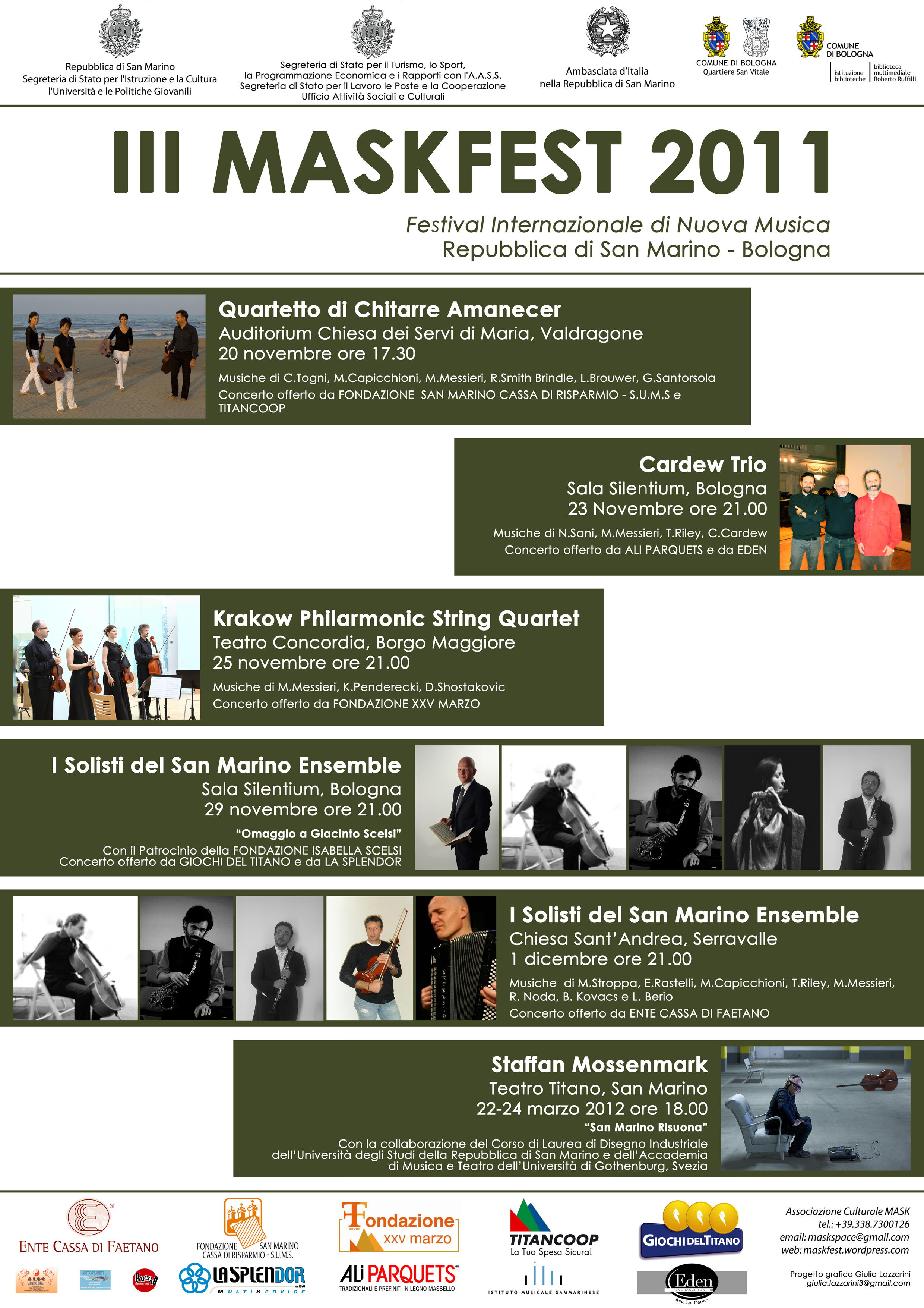 con Michele Selva, sax (RSM), Marco Torsani, cl. (RSM), Emanuele Rastelli, fisar. (RSM), Aldo Capicchioni, vl. (RSM), Nicola Baroni, vc. (I)